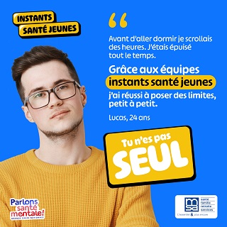 Avec Instants Santé Jeunes, si tu es adhérent à la MSA et que tu as entre 16 et 24 ans, tu peux bénéficier d'un coaching gratuit de 30 mn pour trouver des solutions concrètes à ce que tu traverses.